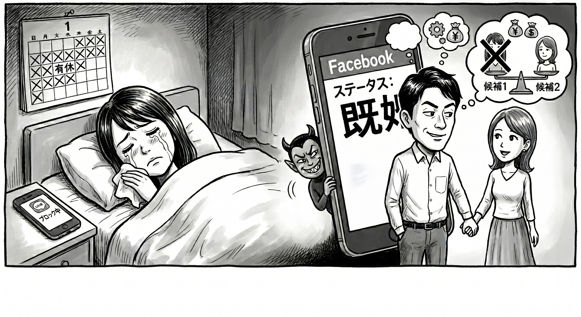 彼女はその後、婚活を成功させ、29歳で別の男性と結ばれました。しかし、SNSで偶然目にした元彼の姿は、さらなる疑念を呼び起こします。彼はとうの昔に別の女性と結婚していたのです。