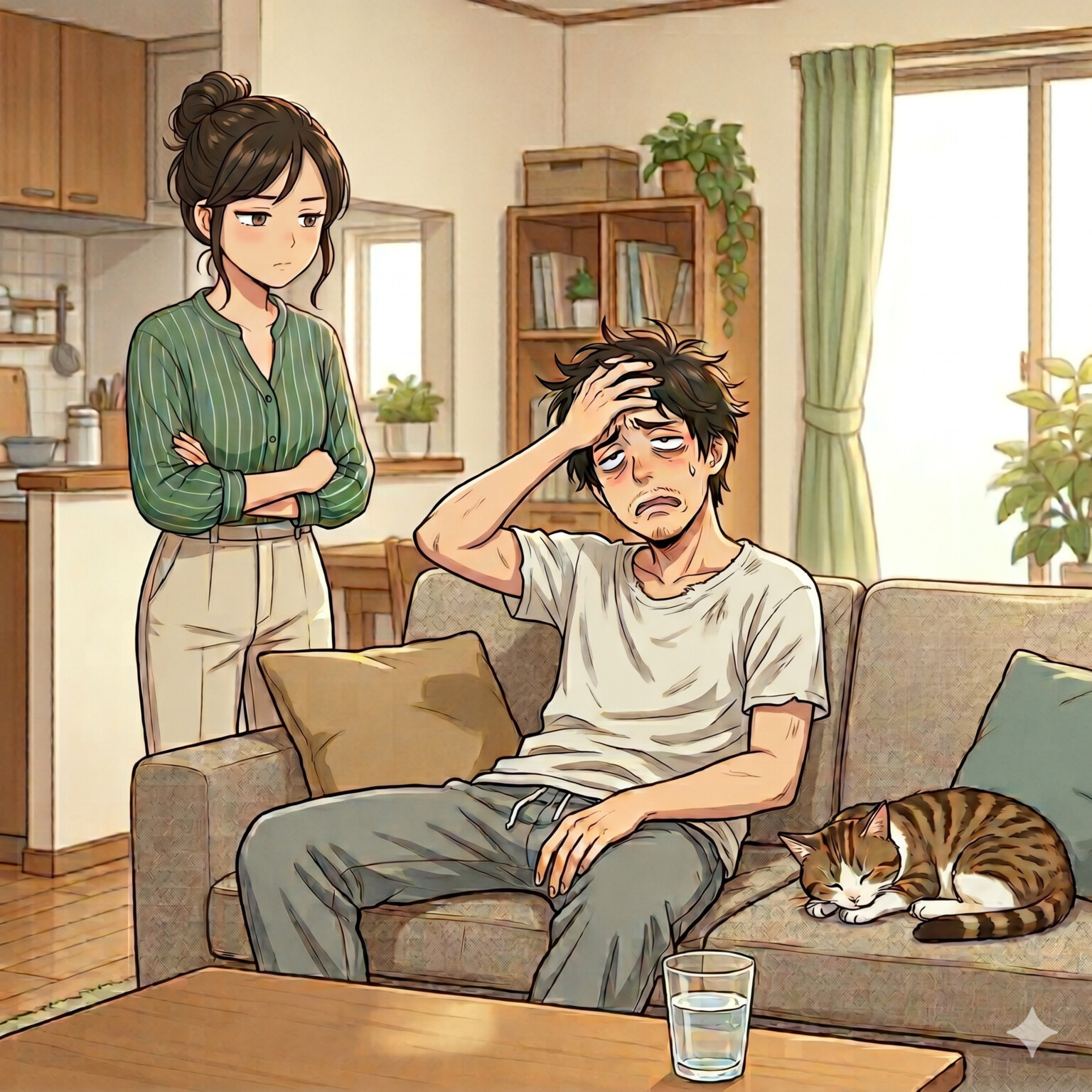 家事も山積みだというのに、ソファでスマホをいじりながら「あー、辛い」とチラチラこちらを見てアピールする夫。その姿を見て、私の中で何かがプツンと切れました。